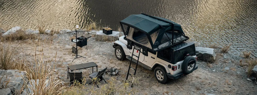 Wild Land’s All-in-One rooftop tent offers easy setup, a lightweight design, and fits any vehicle. It sleeps four, with a ceiling vent to prevent condensation, panoramic views, and all-weather protection.