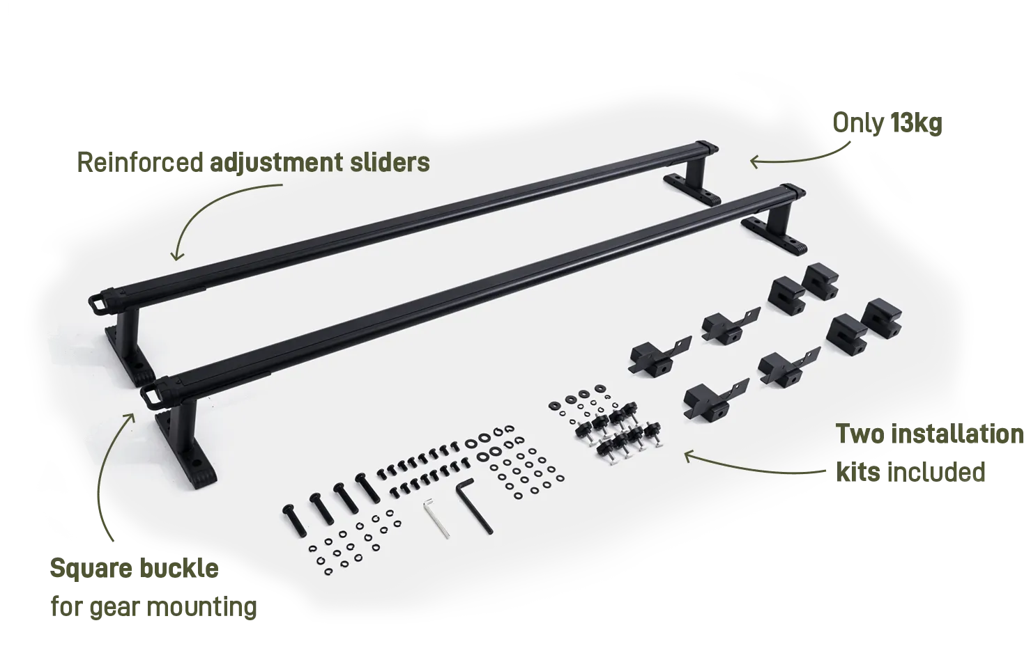 Compatible with over 75% of pickup models with 170cm/67in long crossbar.